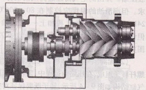 我不知道你們發(fā)現(xiàn)沒(méi)?此類(lèi)型空壓機(jī)的氣缸里面有兩個(gè)按一定傳動(dòng)比反向旋轉(zhuǎn)又互相嚙合的螺旋形轉(zhuǎn)子互相并列。按照?qǐng)D片來(lái)看,節(jié)圓外具有凸齒的轉(zhuǎn)子稱(chēng)為陽(yáng)轉(zhuǎn)子;節(jié)圓內(nèi)具有凹齒的轉(zhuǎn)子稱(chēng)為陰轉(zhuǎn)子。